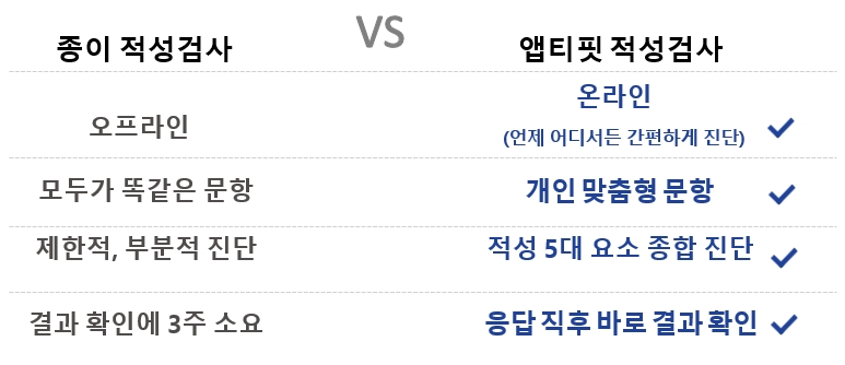 * 앱티핏 : 적성을 의미하는‘APTITUDE’ 와 맞춤을 의미하는 ‘FIT’의 합성어입니다.